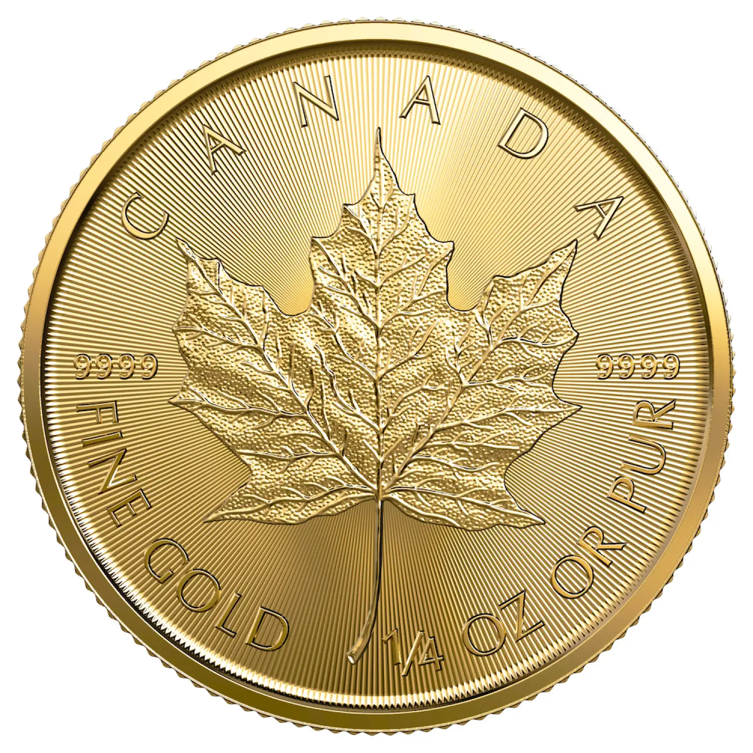 The 2022 1/4 oz Canadian Gold Maple Leaf coin contains 1/4 oz of .9999 fine Gold. The weight and purity of this coin is guaranteed by the Royal Canadian Mint. These 2022 maple leaf gold coins are highly popular among investors and collectors.