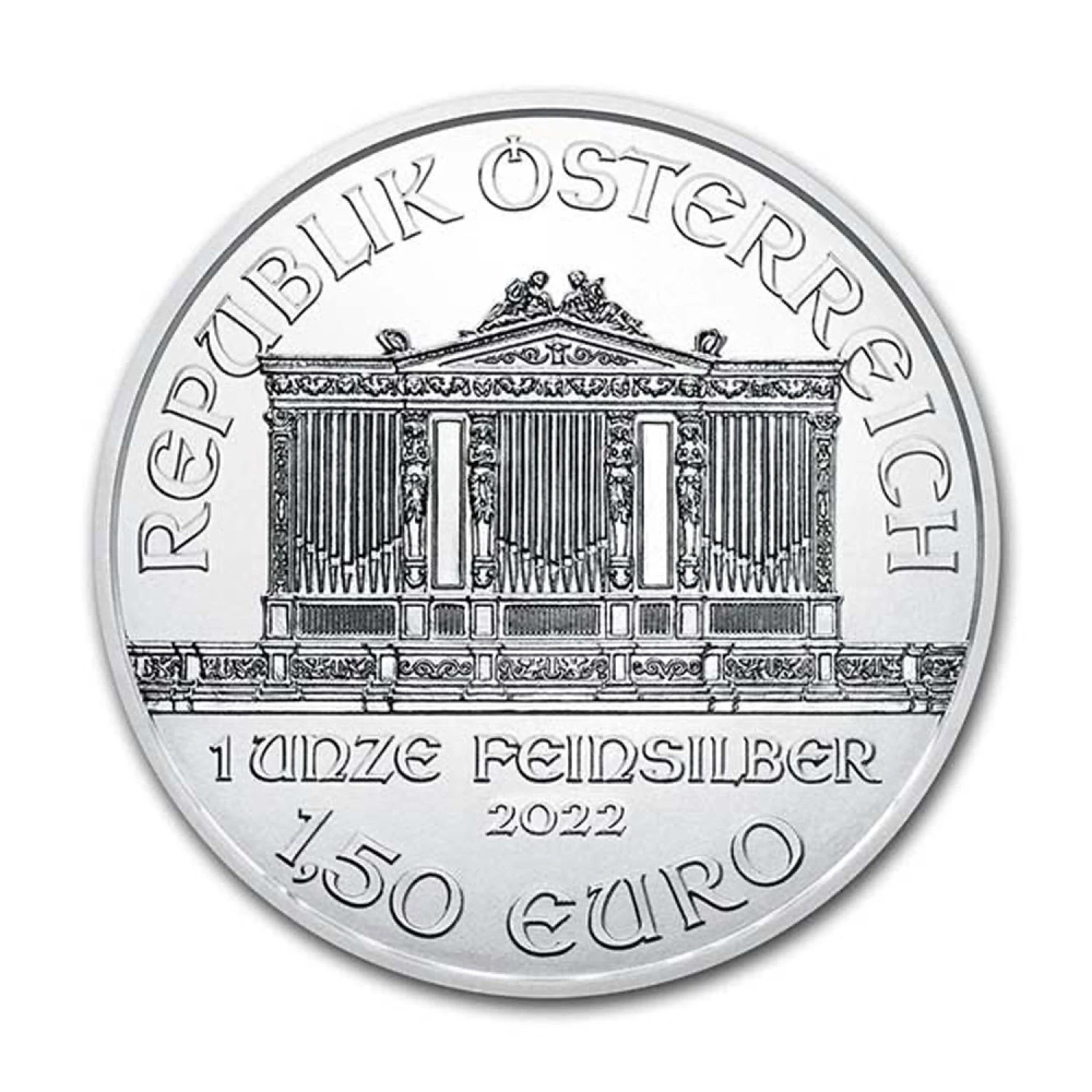 The Austrian Silver Vienna Philharmonic is a silver coin produced by the Austrian Mint. It is the most popular silver bullion coin in Europe. The coin is legal tender in Austria with a face value of 1.50 Euros. It weighs exactly 1 troy ounce of .999 fine silver. This Austrian Philharmonic silver coin has a beautiful design and is popular among all collectors and investors alike.