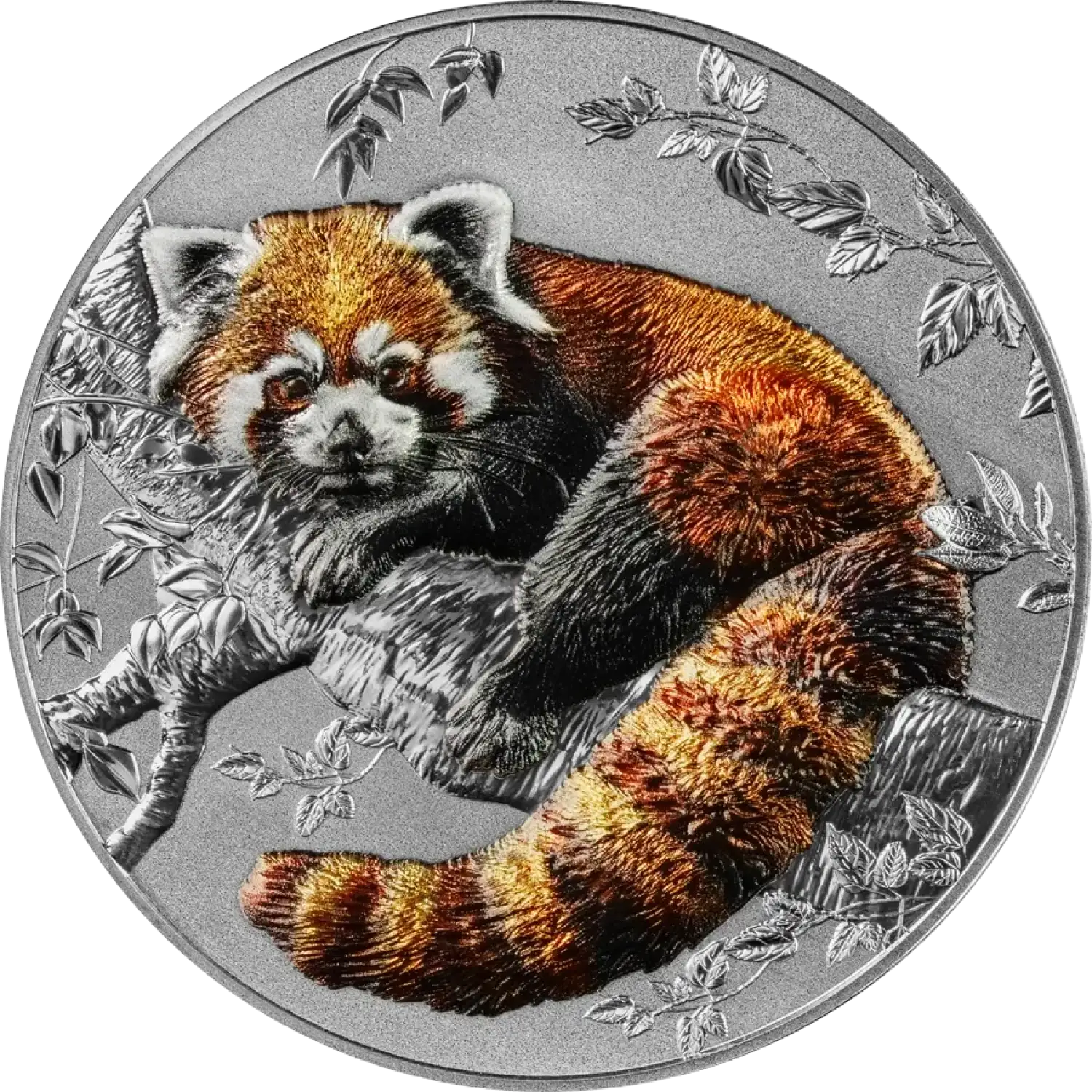 The design of the coin captures the playful essence of the red panda, presenting it in a beautifully detailed relief. The obverse features the effigy of Her Majesty Queen Elizabeth II, honoring the beloved monarch while the reverse presents an eye-catching depiction of the red panda in its natural habitat, surrounded by lush bamboo. The coin’s vibrant imagery is complemented by a frosted background that enhances its visual appeal.
