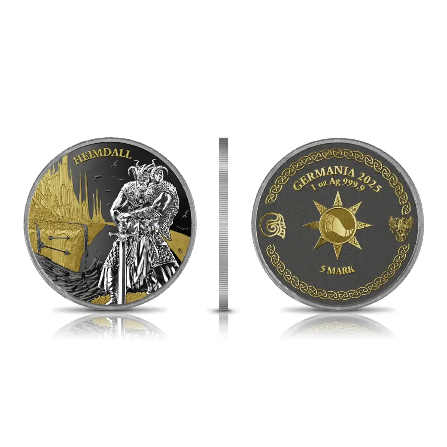 The 2025 1 oz x 2 Ragnarök: Loki & Heimdall Geminus Silver Coin is an exquisite addition to any precious metal collector’s portfolio. Celebrating Norse mythology, this stunning coin captures the legendary figures of Loki and Heimdall, two iconic deities known for their complex roles in the mythological tales of Ragnarök. Struck from 1 troy ounce of .999 fine silver, this coin showcases remarkable craftsmanship and design that tells a story of ancient lore.
